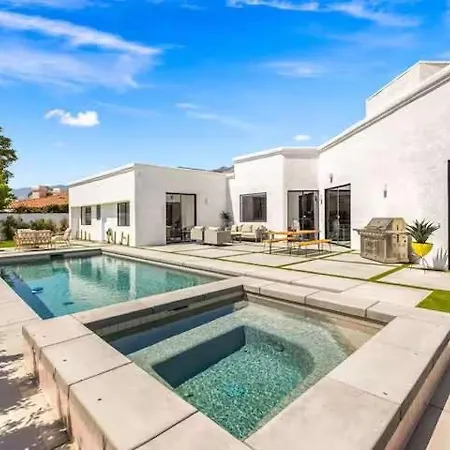 Situated merely 1.3 km from the Ruth Hardy Park, The Lighthouse- Monthly 5 Bd 4 Bth Pool & Spa Palm Springs villa features a patio with views of the mountain. Offering a private pool, this Palm Springs holiday home invites guests to visit the bustling Spa Resort and Casino, located about a 10-minute drive away.